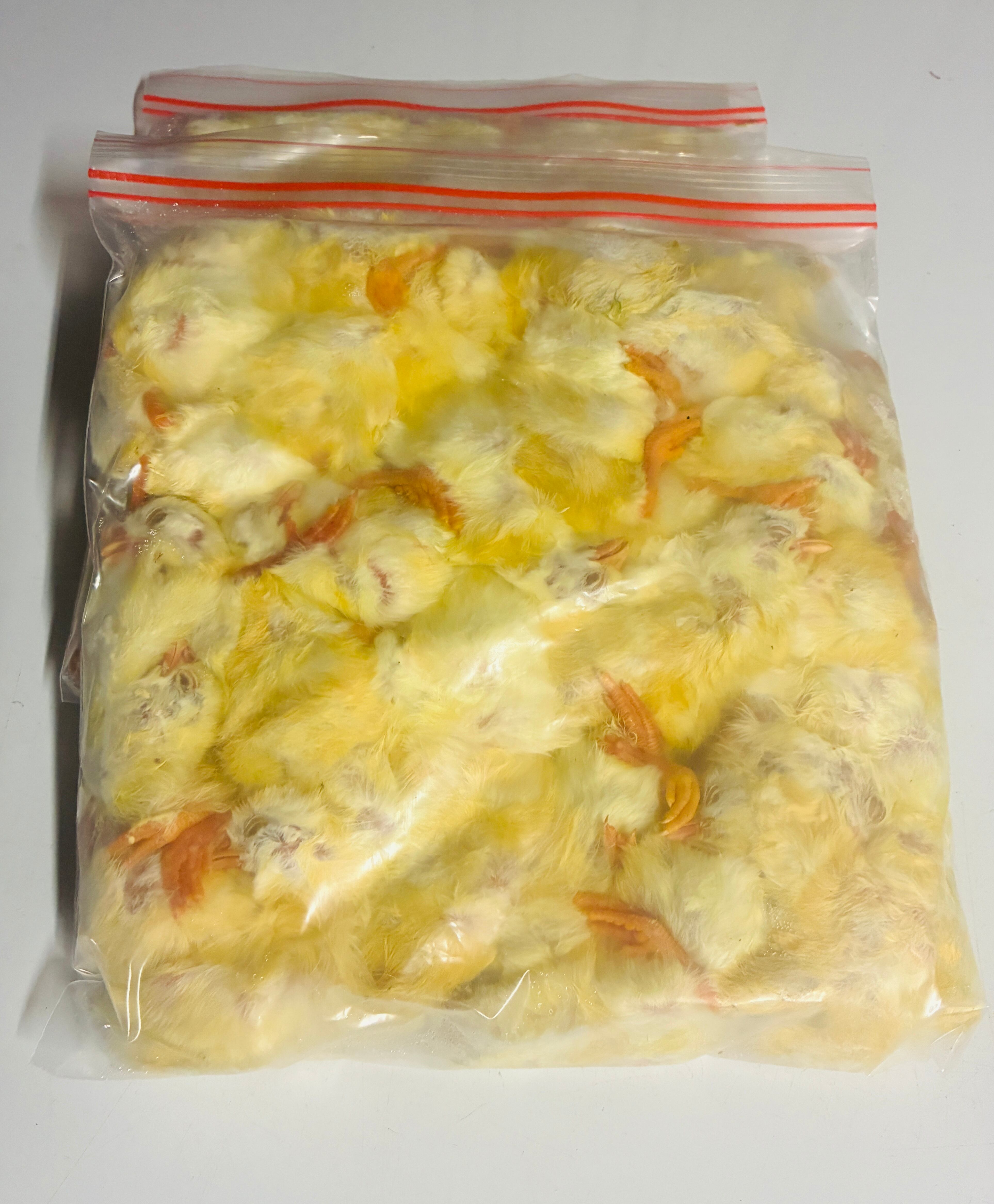 新鮮で栄養たっぷりの冷凍ヒヨコ、25羽袋入りの特別パッケージが登場しました。鮮度を保ったまま冷凍しました。ペットや動物の飼育において、袋入りは、扱いやすいサイズ感です。